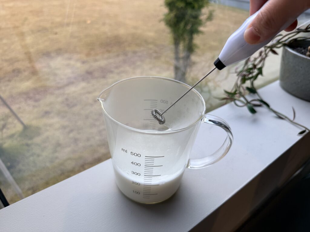 **ミルクフォーマー、マグカップ、お気に入りのお菓子(いもけんぴ)**も合わせてレビューします。