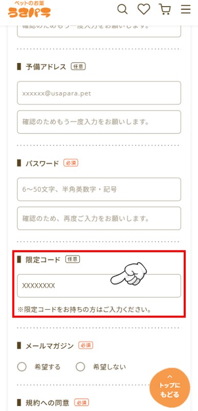 「うさパラ」|限定コードを初回会員登録時に入力するとポイントUP ⇒ 限定コード『 SZSN8N3T 』